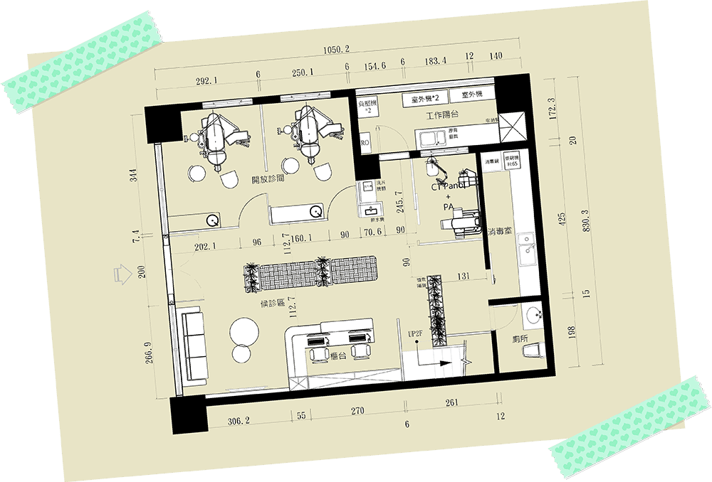 考量診所設備的需求,才能準確規劃各診療室大小及管線的配置,並決定是用木作高架地板施作,還是將管線用踢腳的方式予以包覆和隔離。